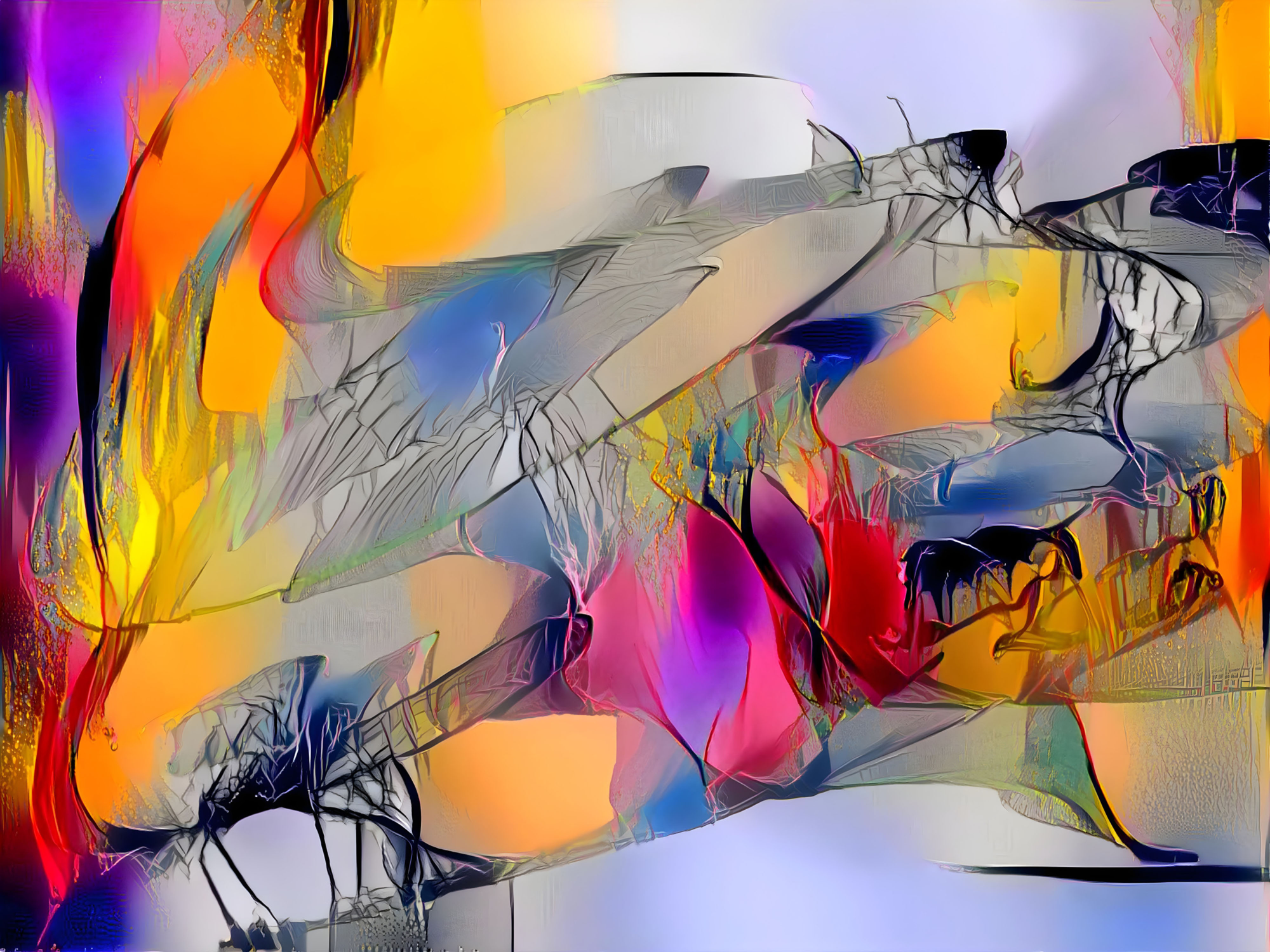 Each piece is an unique digital painting, hand drawn, altered through several proprietary AI algorithms to generate the distinctive and unique glass silhouette aesthetic.